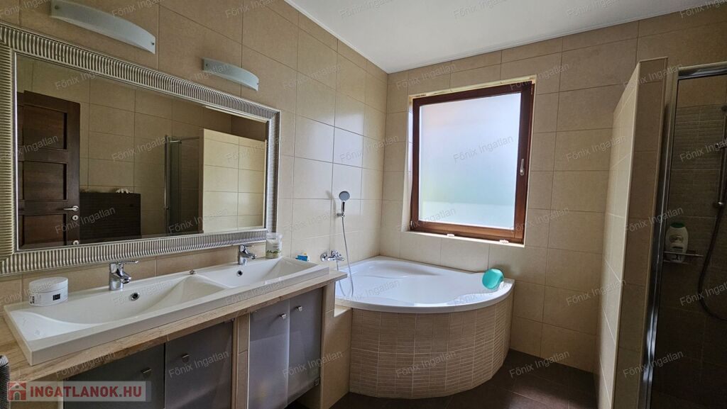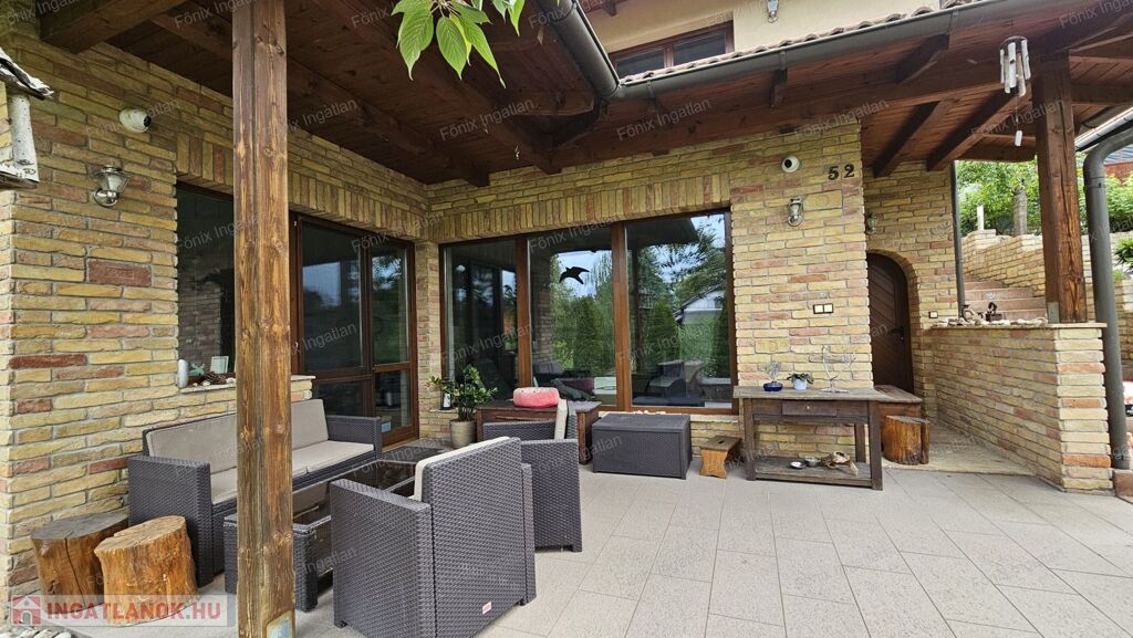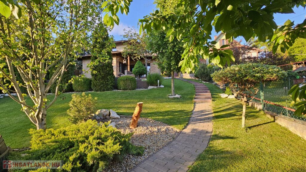 2011-ben, egyedi igények szerint épült ház minden részletében a kényelemről, biztonságról és gazdaságos fenntarthatóságról szól. 44 cm-es HS Porotherm falazat, háromrétegű biztonsági üvegezés, és az 50 cm-es padlásszigetelés alapot adnak a kiemelkedő A+++ energetikai minősítéshez. Ezt egészíti ki a szaldós elszámolású 10 kW-os napelemes rendszer, a gázfűtés, valamint a központi fűtésre kötött vízteres kandalló.