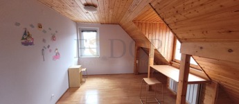 Az emeleti szinten újabb két hálószoba található, egyikük saját terasszal, valamint egy zuhanyzós fürdőszoba, külön WC-vel, és egy modern, amerikai stílusú konyhás nappali teszi teljessé az otthonos hangulatot.