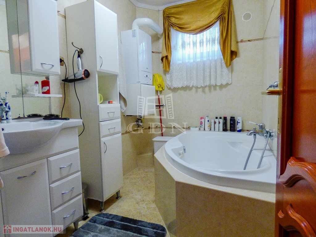 A ház szigetelt (10 cm dryvit), a kert gondozott, részben térkövezett, öntözőrendszerrel, fúrt kúttal kiépített.