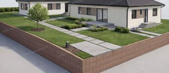 - Kerítés díszkővel, fa vagy acél közökkel.