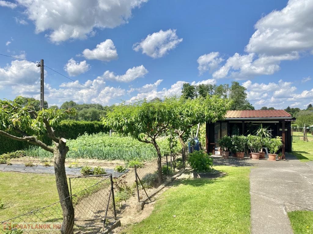 gyümölcsfák (kb. 30 db: barack, alma, körte, cseresznye, meggy), bogyósok, veteményes