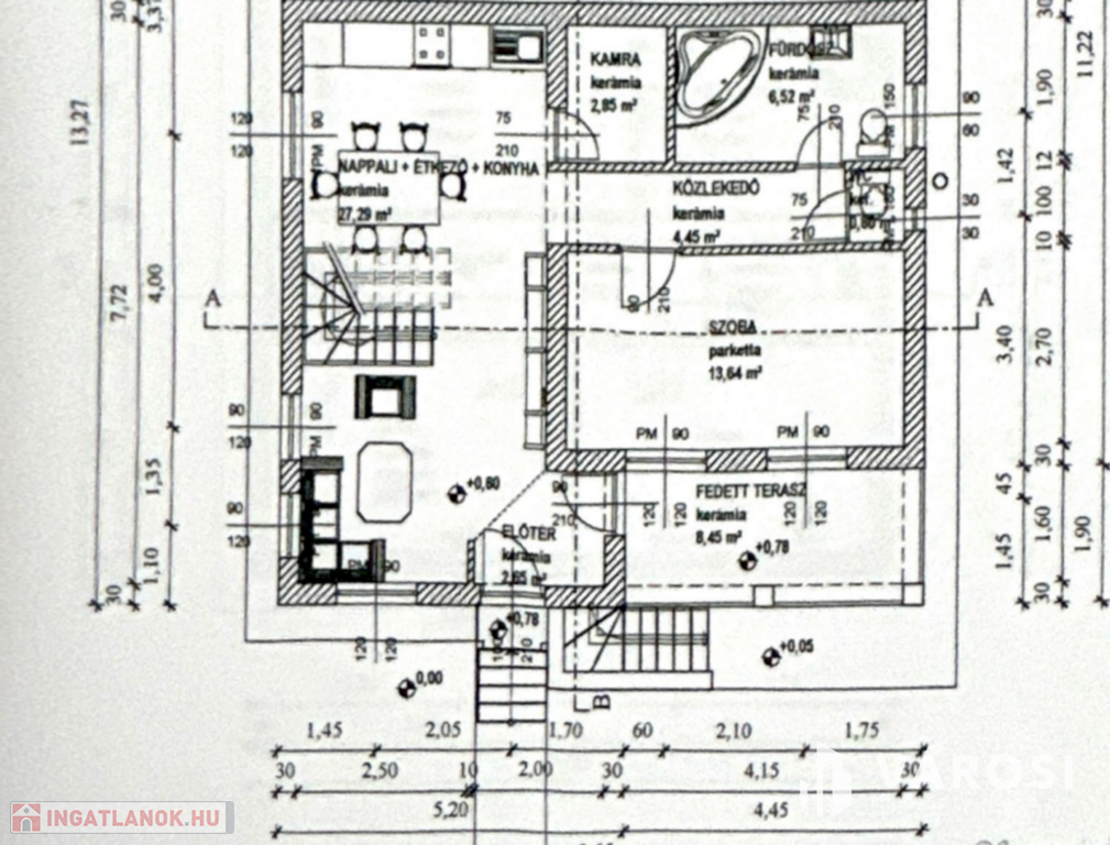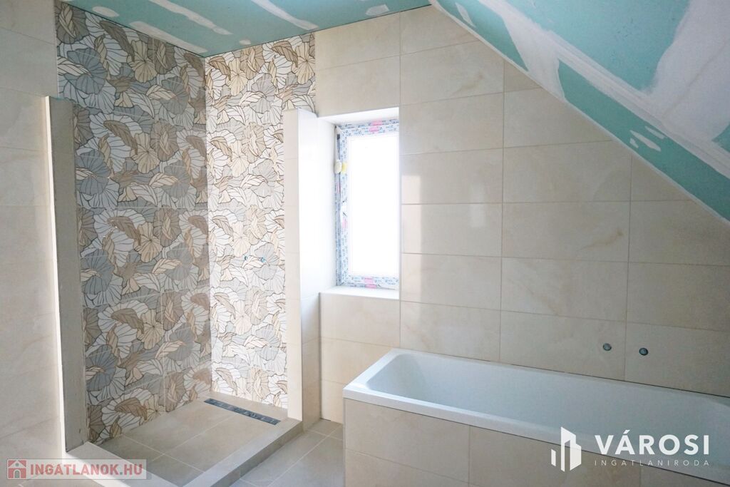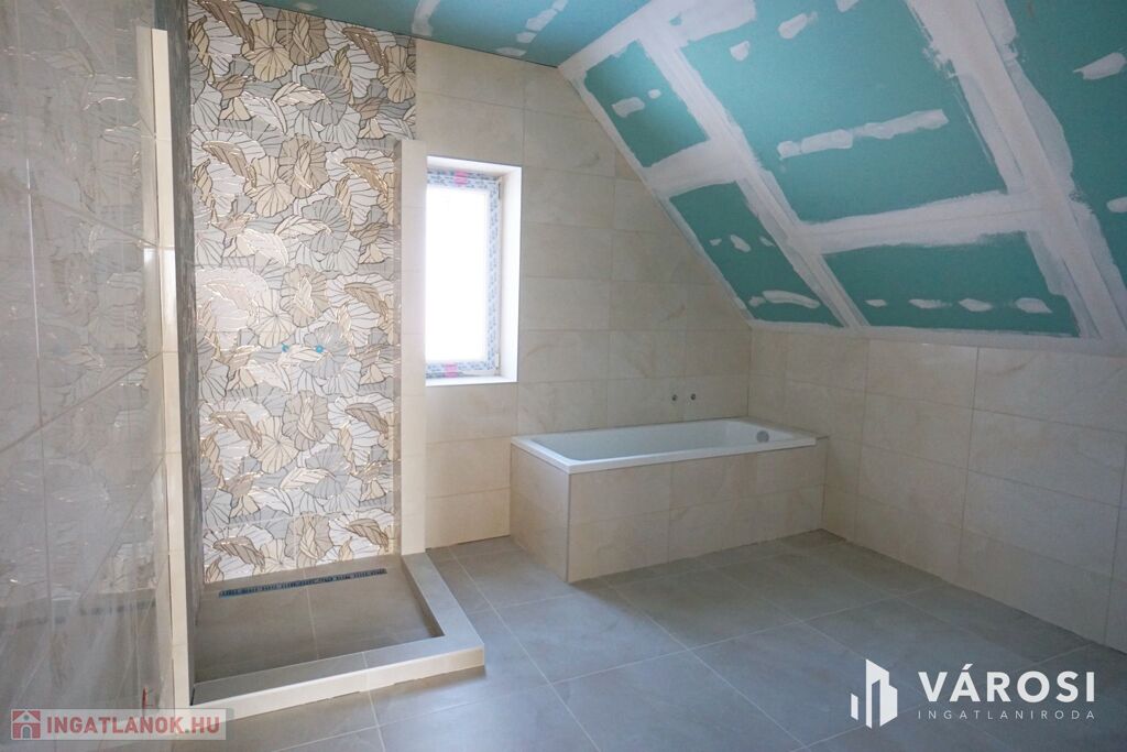 Teljesen felújított 122 m2 lakóterű ház új tetőtérrel, gépesített konyhával, fedett terasszal és külső lejáratú pincével.