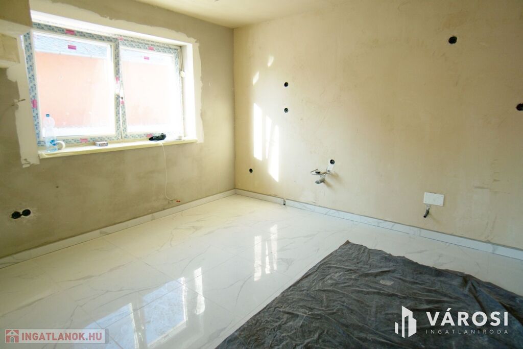 Az ingatlan egy vadonatúj, gépesített beépített konyhával kerül átadásra, a helyiségekben redőnyök és szúnyoghálók lettek felszerelve, riasztórendszer és optikai internet biztosítja a kényelmes, modern életvitelt,. Az udvarban autóbeállási lehetőség biztosított elektromos kapun keresztül.