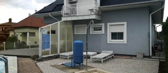 Zala vármegye, Gyenesdiás 220 m2-es, kétszintes családi ház eladó. A kedvelt Balaton-parti település csendes utcájában, a strandoktól 10 percnyi sétatávolságban található, a 2000-es évek elején épült, majd 2022-ben felújított ingatlan fogadószintjén előtér, illemhelyiség, konyha, nappali, étkező, 2 db hálószoba (fürdőszobával), előtér, terasz, 1 személyautó számára garázs elektromos garázsajtóval és mosókonyha, míg az emeleten 3 erkélyes lakrész 2-2 hálószobával és saját fürdőszobával került kialakításra. A ház melegéről gázkazán és hűtő-fűtő klímák gondoskodnak. Az 1100m2-es telken elhelyezkedő családi ház udvarán csempézett úszómedence (6X10X1,5m), fedett kerti kiülő, játszótér, öntözőrendszer szolgálja az ott lakók nyugalmát. A gépjárművek tárolására a garázson kívül térkövezett udvari beállók szolgálnak. A tehermentes ingatlanon szaldós elszámolású napelem rendszer kiépítése is megtörtént. Az ingatlan alkalmas lehet több generáció együttélésére, vagy befektetésnek egyaránt. A családi ház megvásárlásához – igény esetén – díjmentesen finanszírozási megoldásokkal szolgálunk.