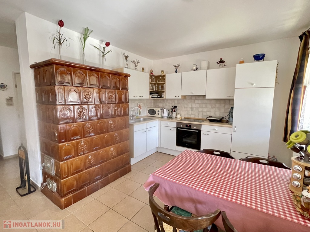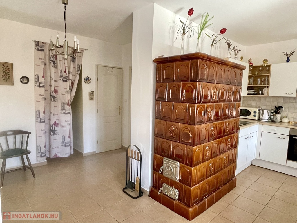 A szobák és a nappali szalagparkettával, illetve parkettával burkoltak, a többi helyiségben kerámia járólap található. A fűtést és melegvíz-ellátást cirkós gázkazán biztosítja, az alsó szinten pedig egy hangulatos cserépkályha is segíti a fűtést a téli hónapokban.