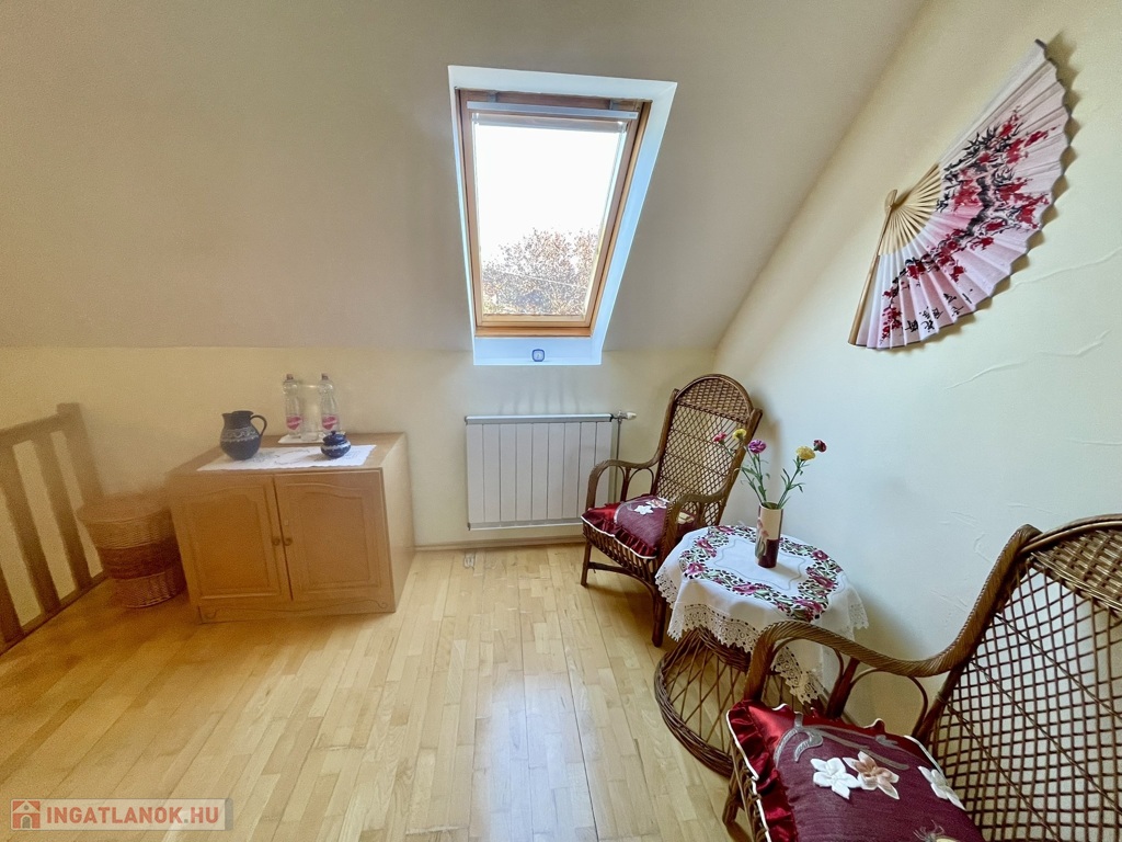 A felső szinten két nyugati tájolású hálószoba található, melyekhez egy közös, 10 m²-es erkély tartozik, továbbá egy déli hálószoba és egy fürdőszoba zuhanyzóval és WC-vel.
