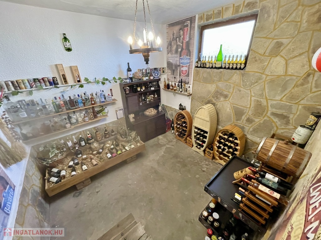 A ház keleti oldalán található egy 10 m²-es mosókonyha és egy 15 m²-es borospince, a hátsó kertben pedig egy kb. 3 x 2,5 m-es fedett kerti kiülő biztosít kellemes pihenőhelyet.