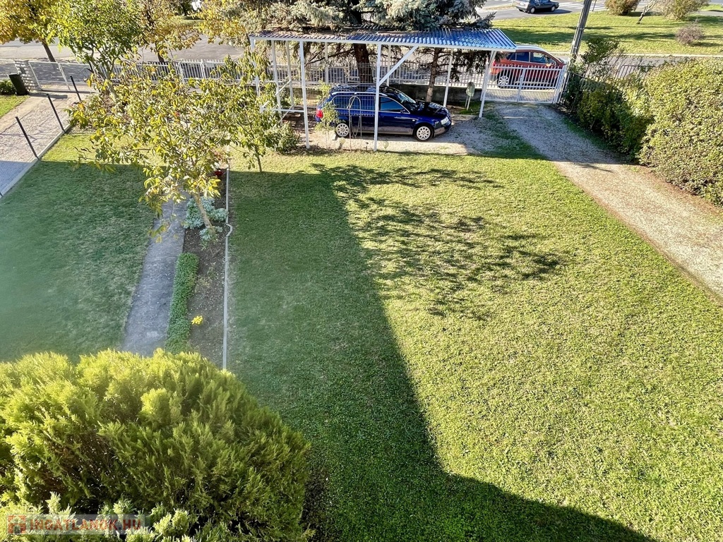 A házhoz tartozik egy 20 m²-es garázs, valamint a rendezett udvarban egy tágas, fedett gépkocsibeálló is helyet kapott. A telek minden oldalról bekerített és rendszeresen karbantartott.