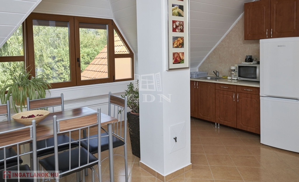 Az emeleti részen iroda, illetve vendégek fogadására alkalmas apartman lakás található, ami külön bejárattal is megközelíthető.