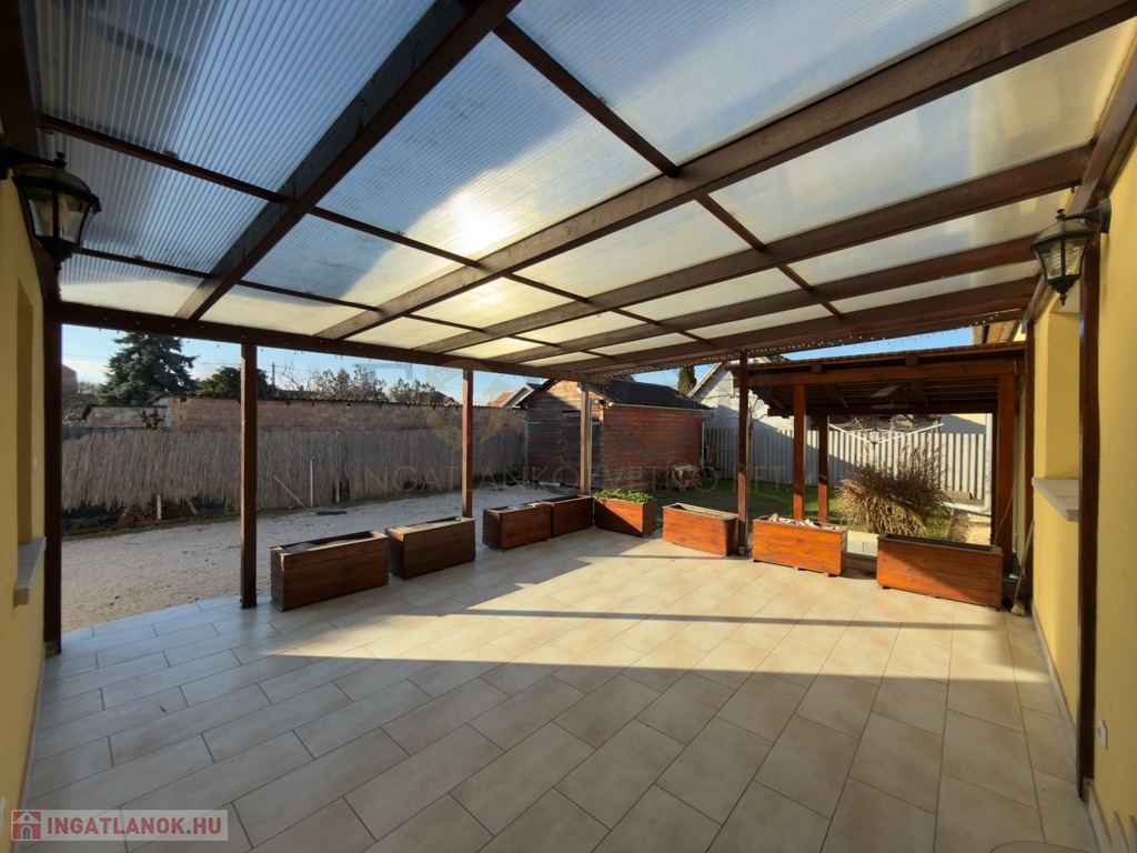 Kertvárosi Életstílus: A 114 m²-es otthon egy 584 m²-es telken helyezkedik el, Kovácsoltvas kerítéssel, elektromos motorral felszerelt kapuval. A kerti locsolás ásott kútról is megoldható, telek adottságainak köszönhetően minden adott a gondtalan pihenéshez, nyári össze jövetelek, valamint a 30 nm –es polikarbonáttal fedett terasz reggeli kávék elfogyasztására és naplementék tökéletes helyszín. A telken könnyű szerkezetű garázs, valamint több autó számára parkolás lehetőséget biztosít – így a praktikum és a kényelem teljes mértékben garantált!