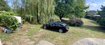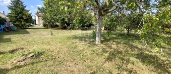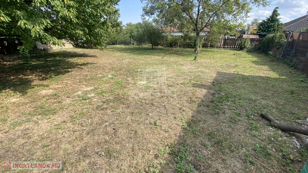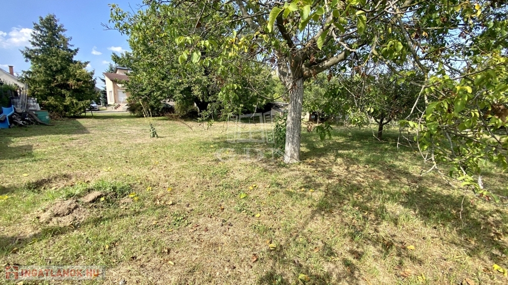 A telek szabályos téglalap alakú, széles utcafronttal, termő gyümölcsfákkal, és akár további beépítésre is alkalmas.
