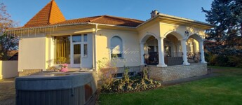 Győr-Kisbácsán nyugodt környezetben, 1331 m2-es intim-parkosított telken eladó egy 2000-ben kimagasló minőségben megépített, igényesen karbantartott, minden részletében átgondolt 175 m2 lakóterű, nappali és 3 szobás, étkező-konyhás klimatizált családi ház, amely kényelmet, biztonságot és luxust kínál egyben. Az épület alatti 145 m2-es pince kikapcsolódásra, sportolásra, hobbi célokra, rendezvények lebonyolítására kíválóan alkalmas.