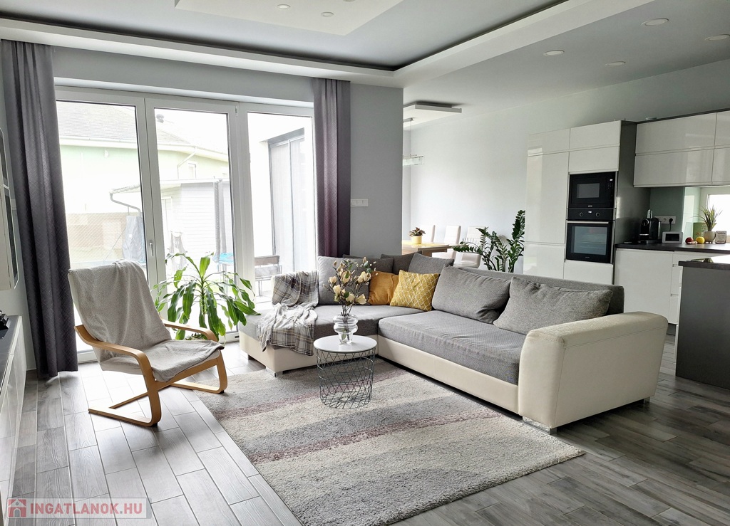 A nyílászárók 3 rétegűek, 6 légkamrásak, így a rezsiköltség rendkívül alacsony. A gondos tervezésnek köszönhetően, minden napszakban éri napsütés az ingatlant. Reggel a hálószobák, majd a déli oldalon a szülői háló, utána pedig estig a nappali és az étkező úszik fényárban. A nappaliból és a szülői hálóból is megközelíthető a 34 nm-es L alakú tágas, jól kihasználható terasz.