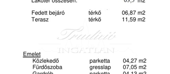 A földszint 63,5 m2, melyhez 6,87 m2-es fedett bejáró illetve 11,59 m2-es terasz is kapcsolódik. Praktikusan itt egy nagyméretű szobát is kialakítottak, ami sorházi lakásoknál ritkaságnak számít.