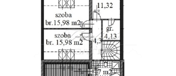 Az emelet területe összesen br. 58,73 m2, amely következő helyiségekből áll: szoba br. 15,98 m2, br. szoba 15,98 m2, szoba 11,32 m2, gardrób 4,13 m2, fürdőszoba 07,05 m2, közlekedő 4,27 m2.