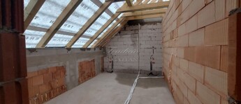 A műszaki tartalom is meggyőző: a főfalak 30-as tégla falazattal 15 cm-es külső szigeteléssel, a külső műanyag profilú, fehér színű nyílászárók 3 rétegű üvegezéssel készülnek, a tetőhéjalás betoncserép, a fűtést és a használati melegvizet 24 Kw-os kondenzációs gázkazán állítja elő, a hőleadás padlón keresztül történik- egyenletes, komfortos meleget biztosítva az egész lakótérben.