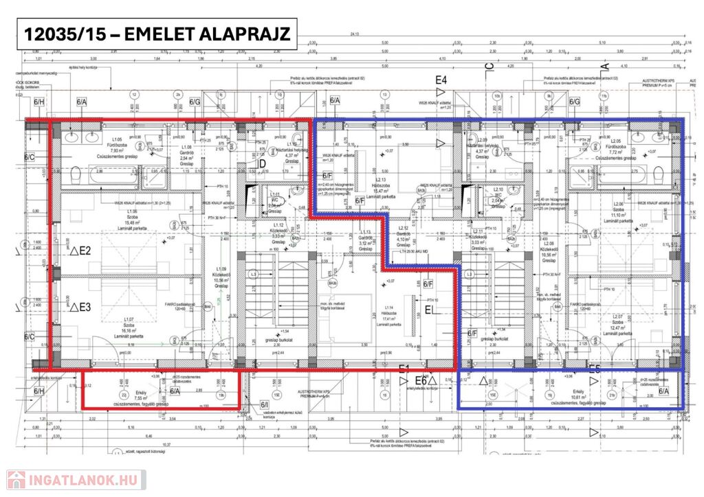 A képek között feltöltött alaprajzon a pirossal színnel jelölt lakás: