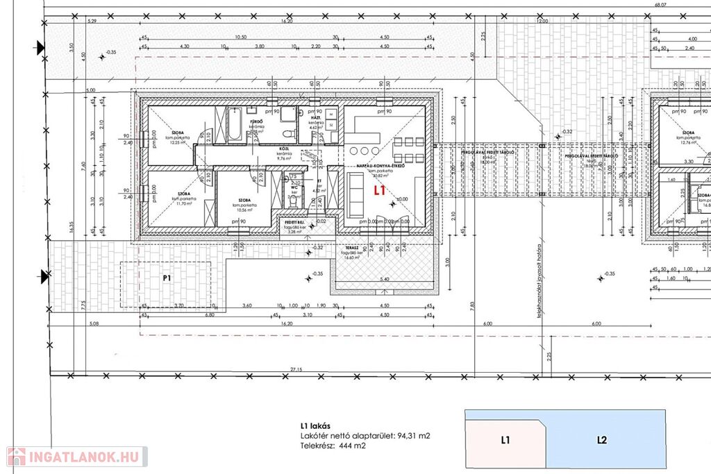 Az ingatlanhoz 16,6 m2 terasz és 3,28 m2-es fedett bejárat tartozik.