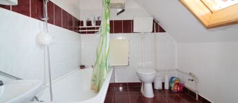 A felső szinten megtalálható egy fürdő+WC, 3 hálószoba, közlekedő.
