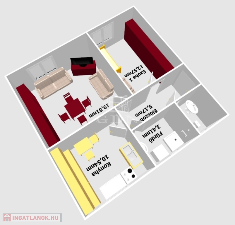 - a ház alapterülete: 72nm.