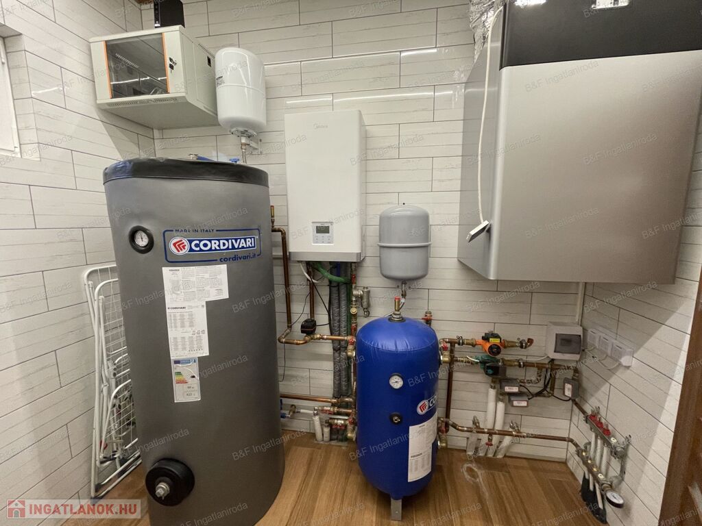 A fűtésrendszer hőszivattyúval működik, kiegészítve padlófűtéssel, így a komfortérzetet maximálisan biztosítja. A központi klíma pedig a nyári hónapokban is kellemes hőmérsékletet tart.