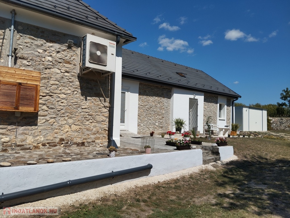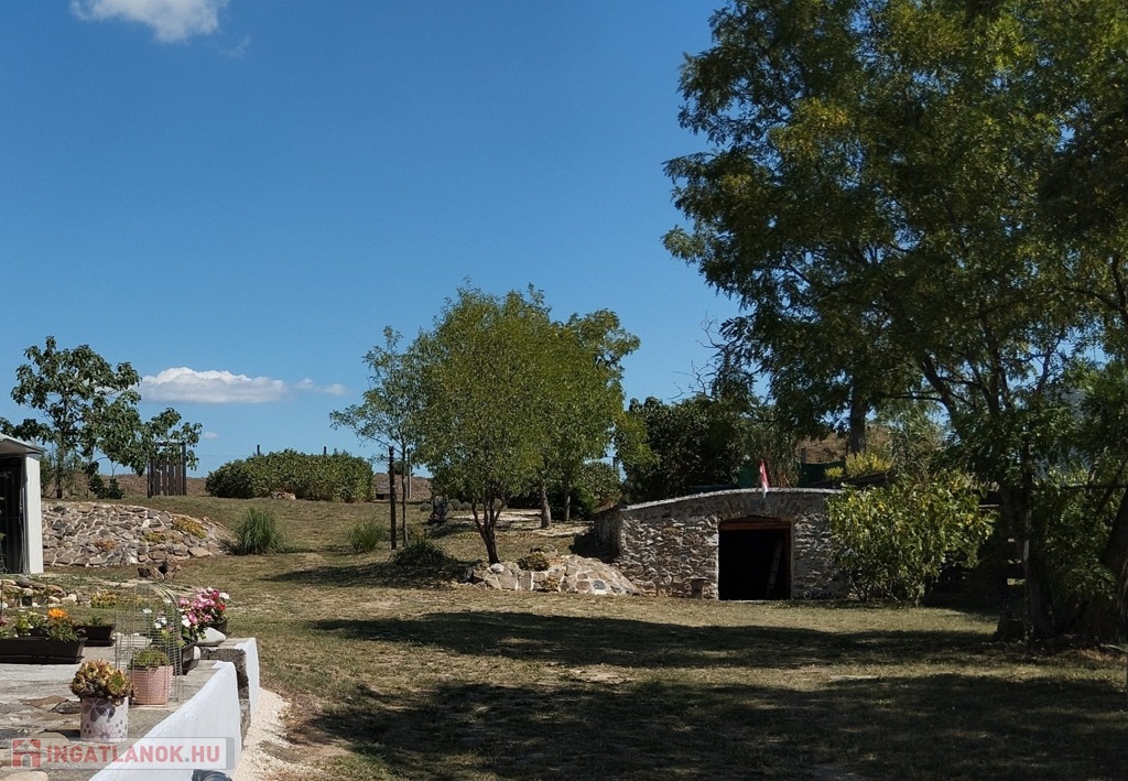 1242 m2-es, összközműves telken fekszik, gáz nem került bevezetésre az ingatlanba. További melléképületek a kertben: bazalt kőből épült 25 m2-es pince, 2 m2-es kerti tároló, valamint egy 25 m2-es lemezgarázs.