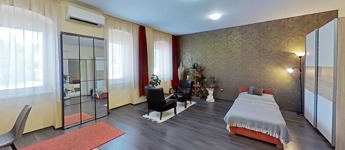 A DNY-i tájolású, földszintes ház hasznos alapterülete 110 m2, mely egy konyhát, nappalit és hálószobát, két fürdőszobát, wellness helyiséget és tárolót foglal magába, amelyeket egy közlekedő folyosó köt össze. A szobák méretéről, elosztásáról a mellékelt virtuális túra keretein belül tájékozódhat.