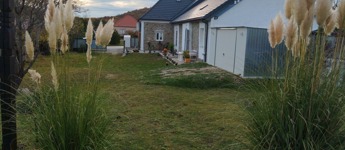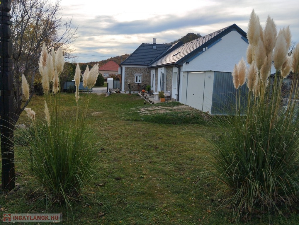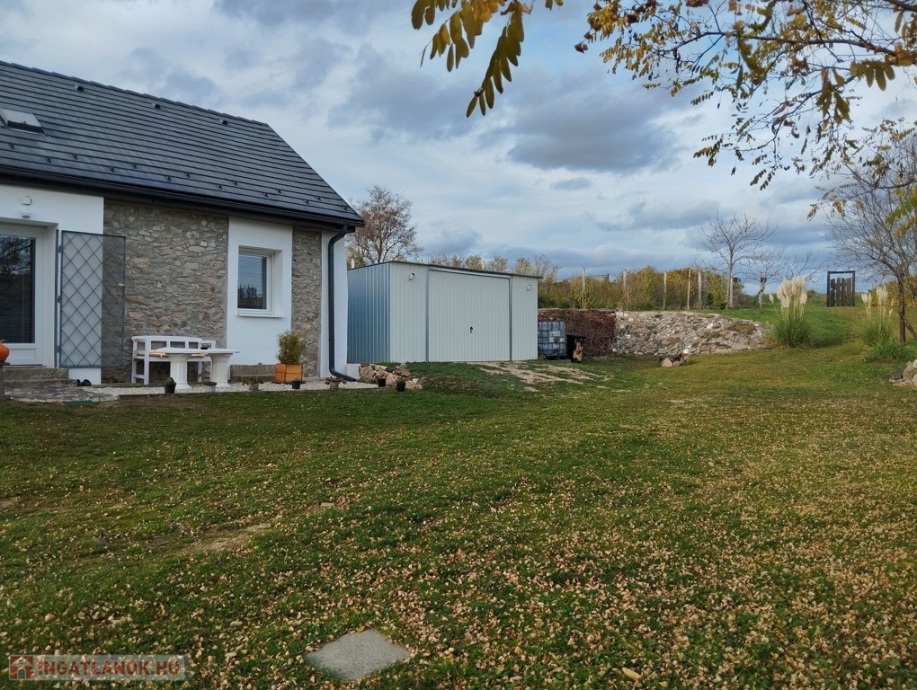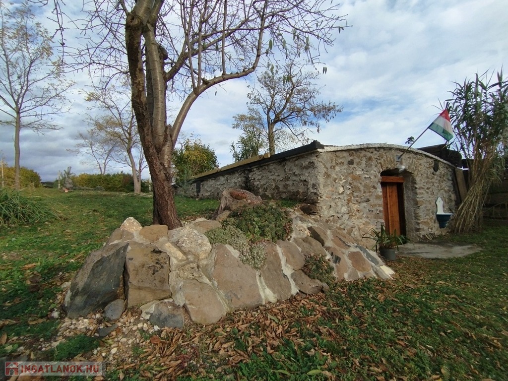 1242 m2-es, összközműves telken fekszik, gáz nem került bevezetésre az ingatlanba. További melléképületek a kertben: bazalt kőből épült 25 m2-es pince, 2 m2-es kerti tároló, valamint egy 25 m2-es lemezgarázs.