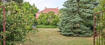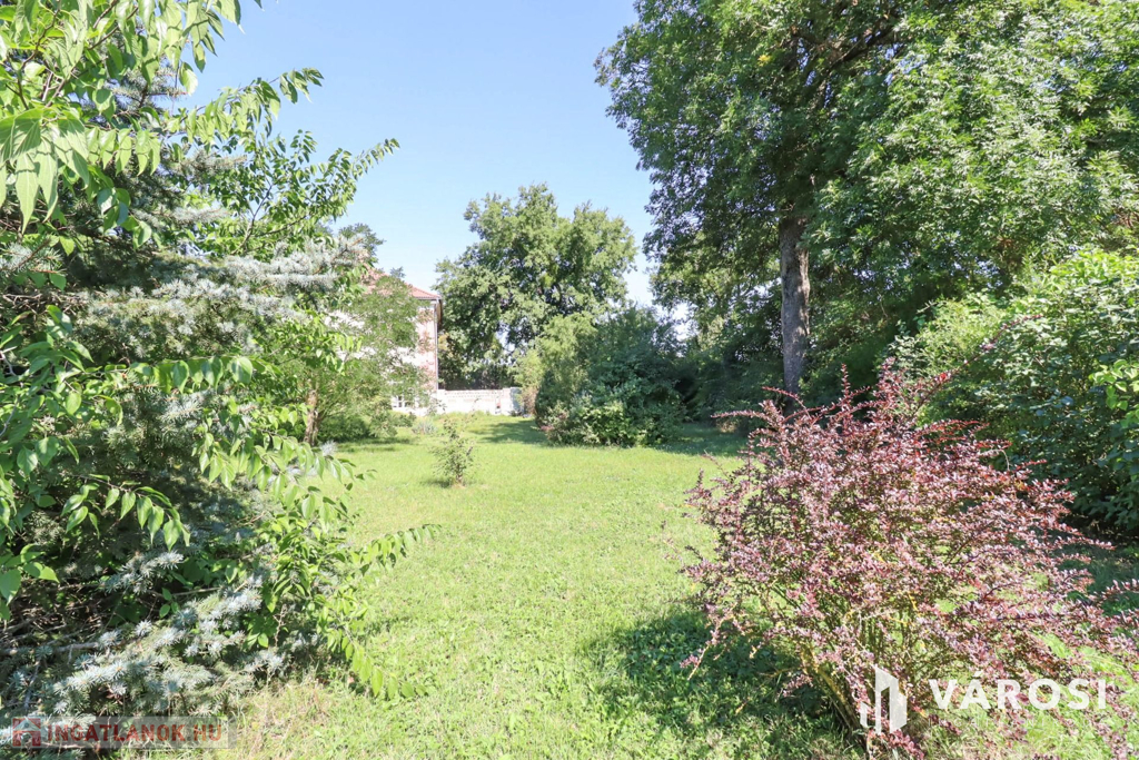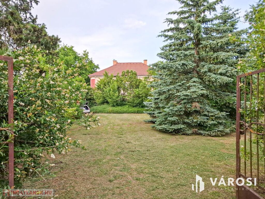 Az ingatlan területén festői környezetben számtalan zöld növényzet, ősfák, örökzöld található. A telek körbekerített, 2 autó bejáró és 1 személyi bejáró is biztosított.