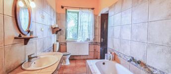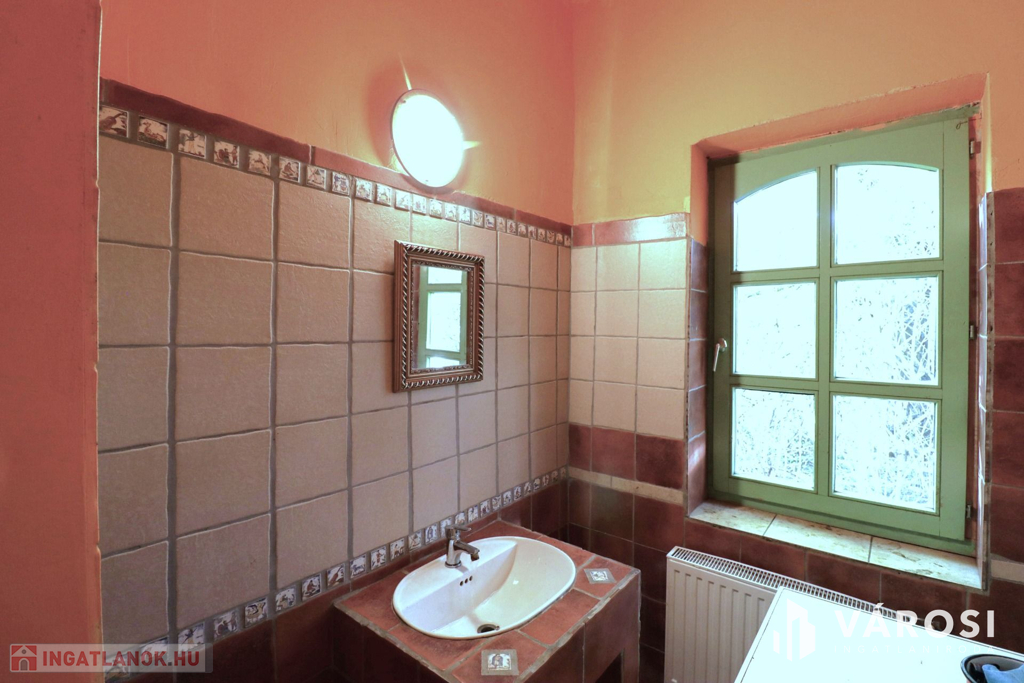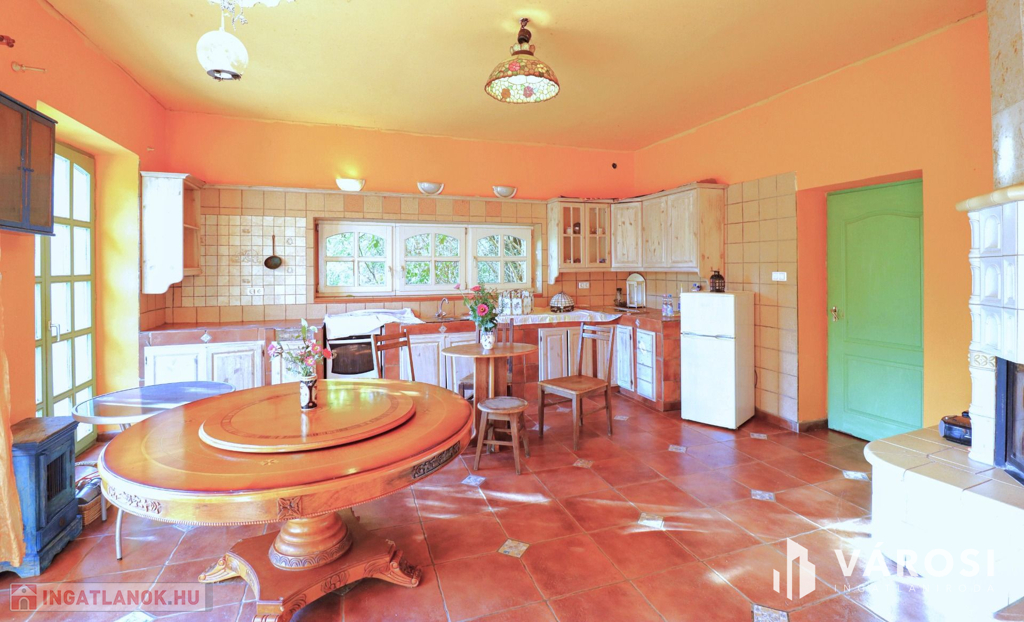 -fűtése házközponti óriási vízteres cserépkályhával, új bélelt kéményekkel, központi egysége a pincében található.