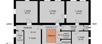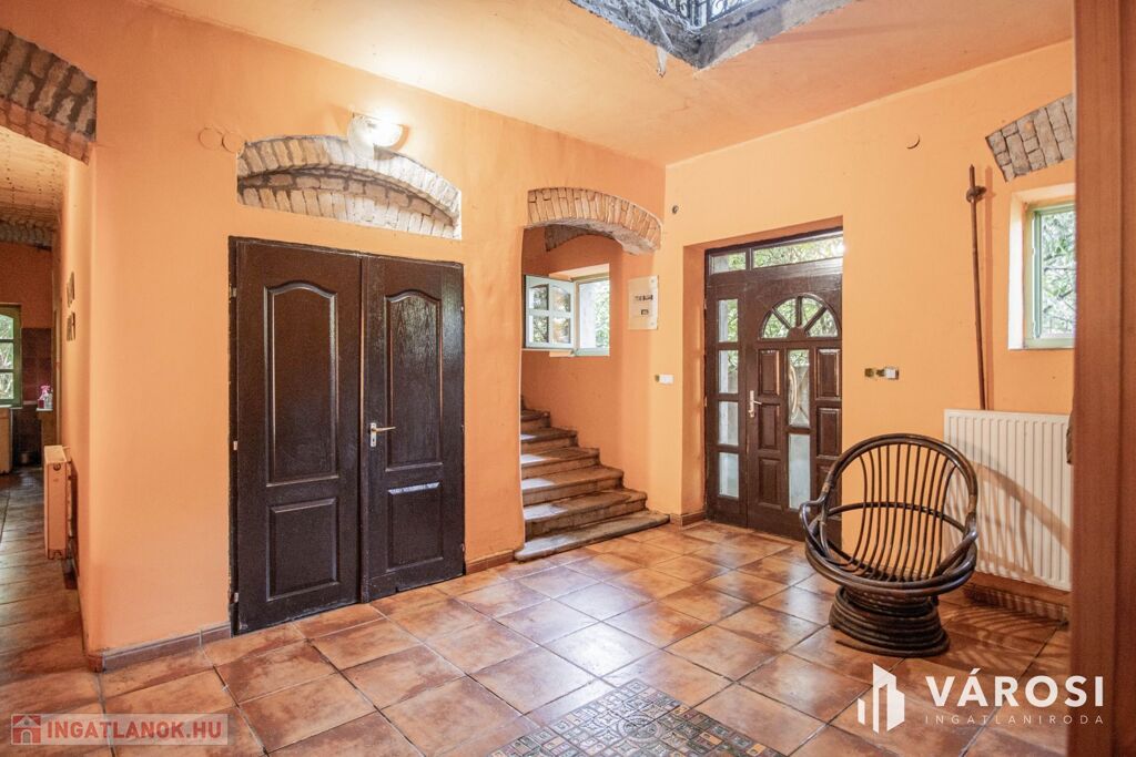 Az 1800-as években épült 2 szintes 364 m2 hasznos lakótérrel, pincével és padlással is rendelkező ház elosztása 7 szoba, amerikai konyhás nappali, terasz, 3 fürdőszoba, galériás emelet, tornác.