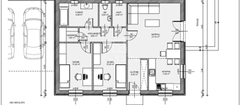 Helvécián eladó egy 71 nm és egy 73 nm, 2 szobás, könnyűszerkezetes ikerház mindkét fele, házanként 420 nm telken.