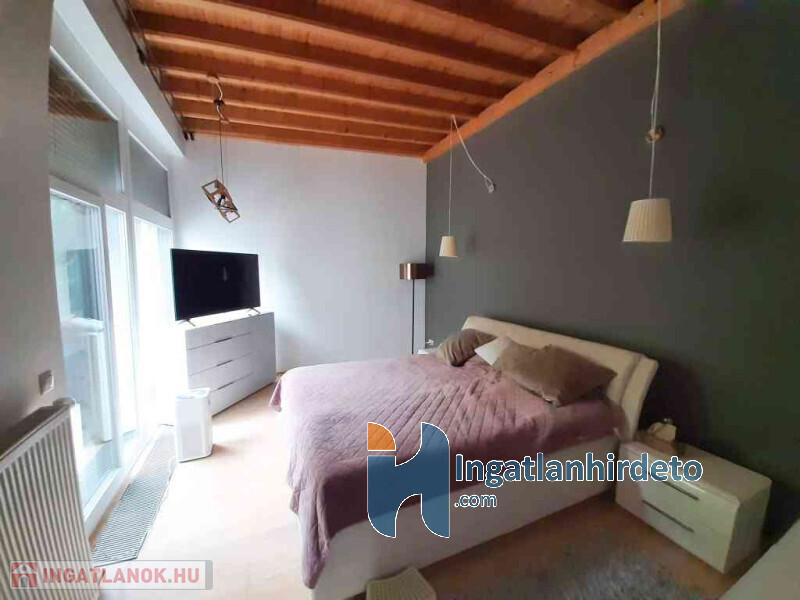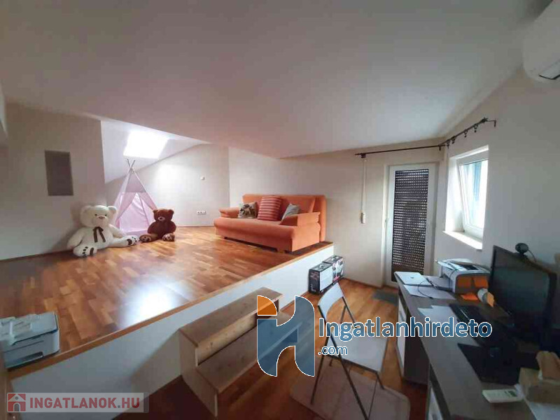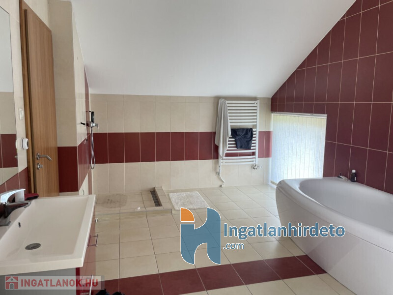 Az előtérből felfelé lépcső vezet a tetőtéri szintre, ahol a TÁGAS és IMPOZÁNS fürdőszoba és egy további nagyszoba lett kialakítva, mely akár dolgozószobának is kiválóan alkalmas lehet.