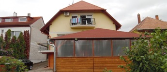 Zala vármegye, Hévíz 300m2-es, 3 szintes apartmanház eladó. A jelenleg is üzemelő, az ingatlan nyilvántartásban „kivett lakóház, udvar” megnevezésű ingatlan alsó szintjén konyha étkezővel, háztartási helyiség, tároló zuhanyzó illemhelyiséggel, külön illemhelyiség és szoba található. Átjárás az 50m2-es garázsba. A középső (fogadó szinten) a hallból jutunk a két apartmanba míg az emeleten további két stúdió és egy apartman került kialakításra. Az helyiségek teljesen felszereltek. Így összességében az ingatlanban 10fő (pótágyazással további 6 fő) elszállásolható. A ház 2000-ben épült, felújítása 2012-ben megtörtént (ekkor kapott 10cm szigetelést is). Azóta is folyamatosan karbantartott. A klímával, elektromos redőnyökkel felszerelt igényes ingatlan melegéről gáz-kazán gondoskodik. Legutóbbi fejlesztésként 2023-ban 8kW-os napelemes rendszer telepítésére került sor. A házhoz tartozó 879m2 telken gépjárműbeállók, a füvesített kertben grillező, pihenő és gyümölcsfák szolgálják a pihenők kikapcsolódását. Az ingatlan vételára teljes felszereléssel értendő. A ház alkalmas lehet bérbeadásra, de akár több generációs család lakhatására is