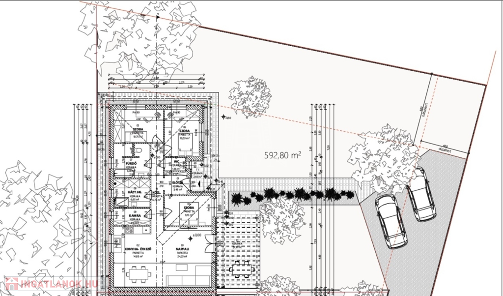 ÖSSZESEN 127m2 ----- NAPPALI +3 SZOBA ----- 593m2 TELEK