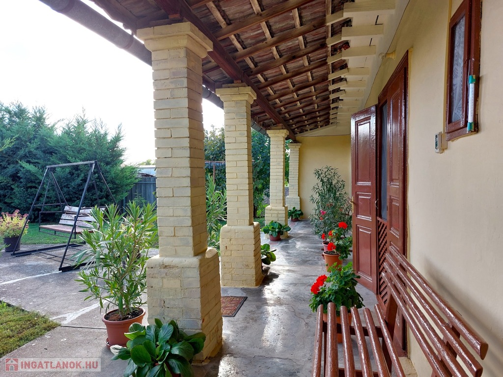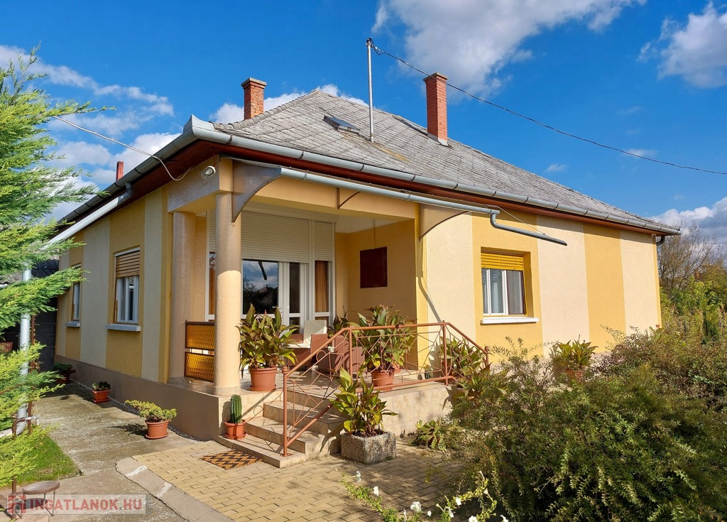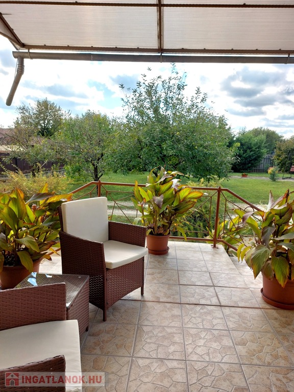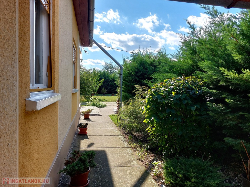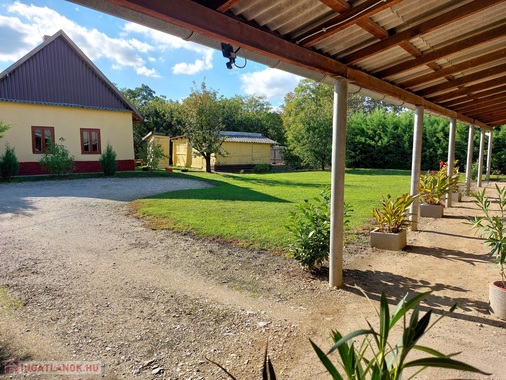 - a 2923 nm- es, körbekerített, dísznövényekkel (pl.: babérmeggy, leylandi ciprus) és termő gyümölcsfákkal és cserjékkel (alma, őszibarack, sárgabarack, cseresznye, birsalma, dió + mogyoró és füge) tarkított, körbekerített telken egy folyamatosan karbantartott otthonos lakóház, egy jó állapotú, hangulatos, tornácos "parasztház" és egy sokrétű felhasználásra alkalmas hatalmas melléképület található