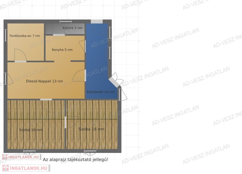 Az 1960-as években beton alapra vegyes falazatból épült ingatlanban kettő szoba, étkező, előszoba, fürdőszoba-wc-vel, fözőfülke, kamra került kialakításra.