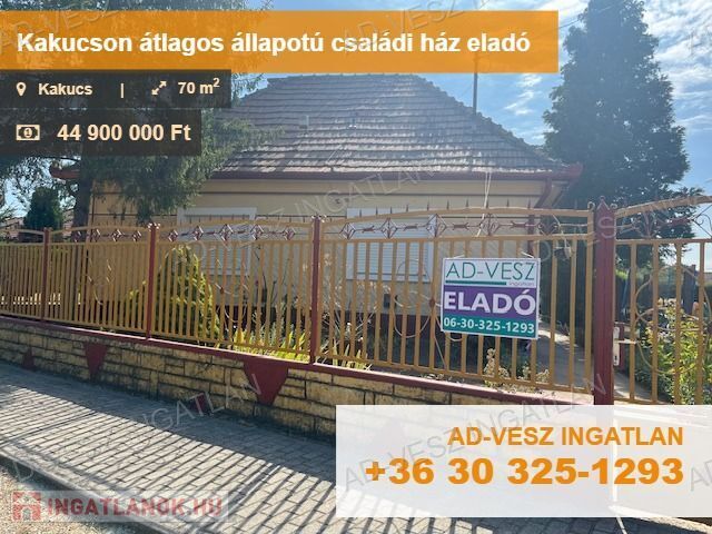 Pest Vármegyében, Budapesttől 35km-re, Kakucs központjában eladó egy 70 m2-es folyamatosan karbantartott családi ház!