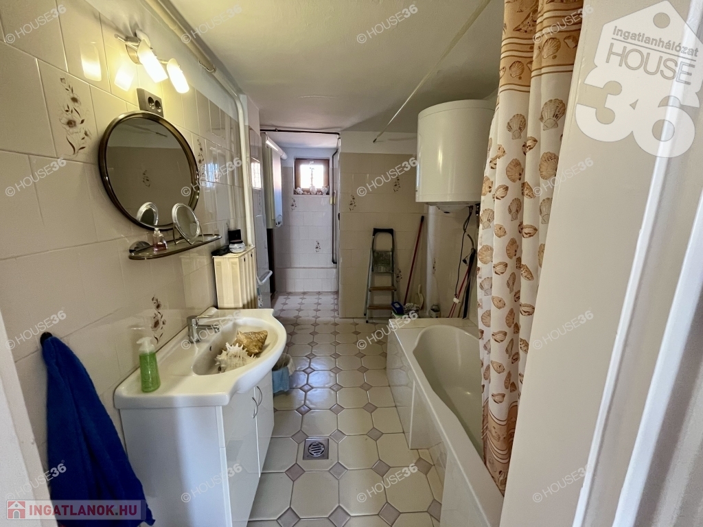 Az alsó szinten 2 szoba, előszoba-nappali, konyha-étkező, kamra, fürdőszoba, WC és egy beépített veranda található 105 m2-en. Az otthon melegéről külön gázkazán gondoskodik. Az új ablakokon szúnyogháló és redőny is található. A fürdőszoba és a wc 5 éve lett felújítva, ekkor a villanyvezetékeket is kicserélték.