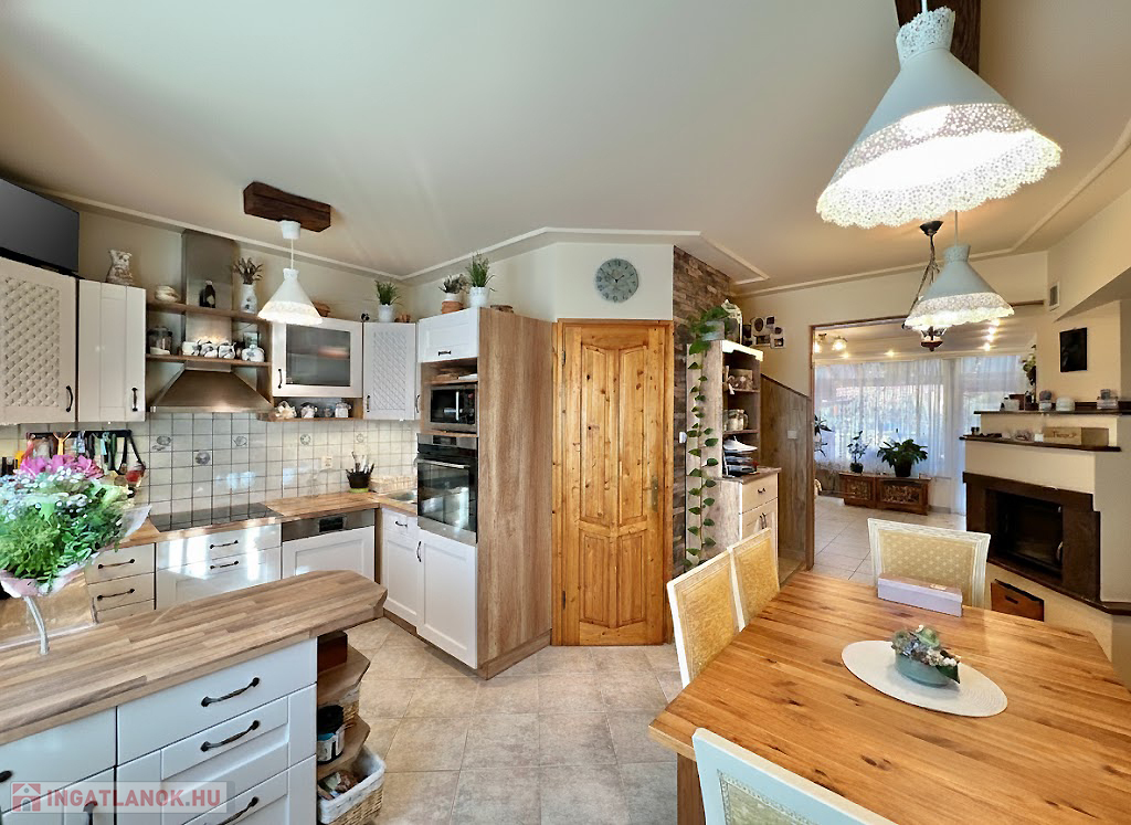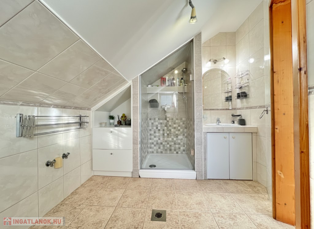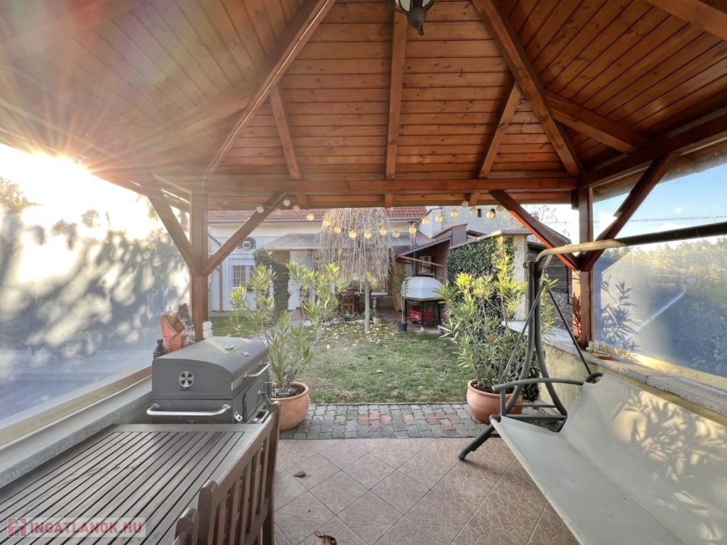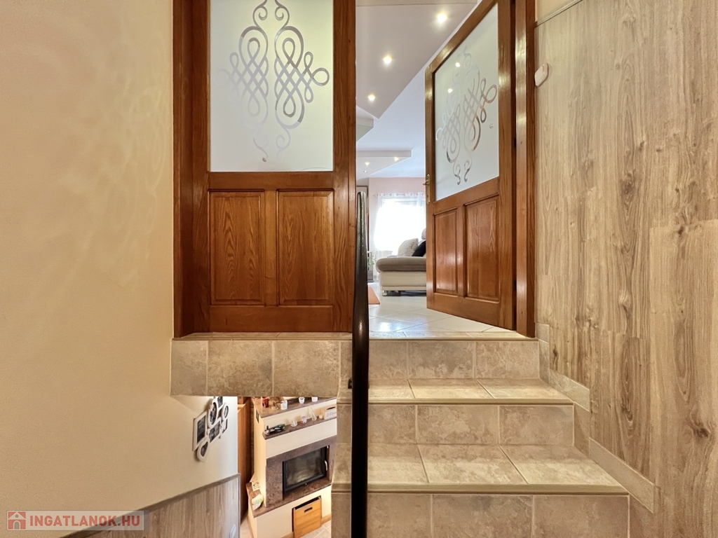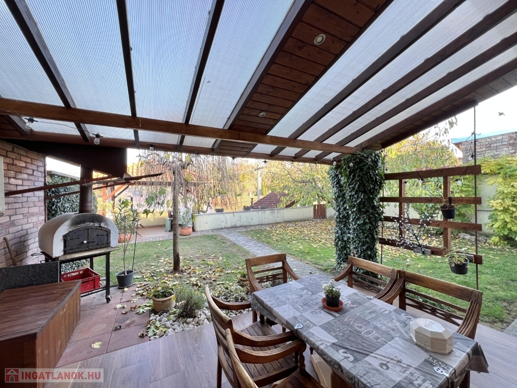 Kaposváron a Donner városrészben - a belváros közelében - 1999-ben két utcára épült, nagyon jó műszaki állapotú és energetikailag korszerűsített családi ház duplagarázzsal, valamint egy különálló lakrésszel együtt eladó. A lakóház alsó szintjén tágas - belső zárt udvar felé néző - nappali, 15 m2-es fedett terasz, 1 szoba, konyha-étkező, közlekedő, fürdőszoba-wc, mosókonyha, illetve 1 db wc helyiségek kerültek kialakításra. A tetőtérben, egy tágas előtér-terasz, 3 szoba, felújított fürdőszoba-wc helyiségek vannak. A fűtése és melegvíz ellátása kombi gázkazánnal és a nappaliban lévő vízteres kandallóval - padlófűtéssel és radiátorokkal megoldott, továbbá a nappaliban és a tetőtérben 1-1 légkondicionáló került felszerelésre. A ház energetikai korszerűsítésen esett át az évek során, a tulajdonos a homlokzatra 5 cm-es hőszigetelést rakatott, valamint új gázkazánt szereltetett fel, 3x20A, riasztó és kamerarendszer kerültek kiépítésre. Az utca felől - további 30 m2-es - jelenleg tárolónak használt - lakóépület van, amelyben 1 szoba, konyha-étkező, kamra, kialakításra váró fürdőszoba-wc helyiségek találhatóak, a fűtése Simat típusú kombi gázkazánnal megoldott. A zárt, hangulatos udvaron - a belváros felé néző - fedett grillterasz lett kialakítva, öntözőrendszer lett kiépítve, továbbá egy 36 m2-es duplagarázs-tároló, illetve az udvarban további 2 személyautónak alkalmas kocsibeálló található. Telek: 294 m2