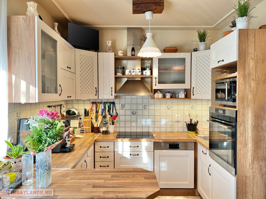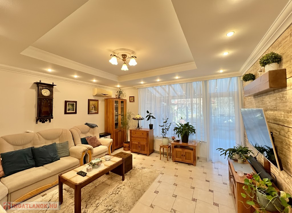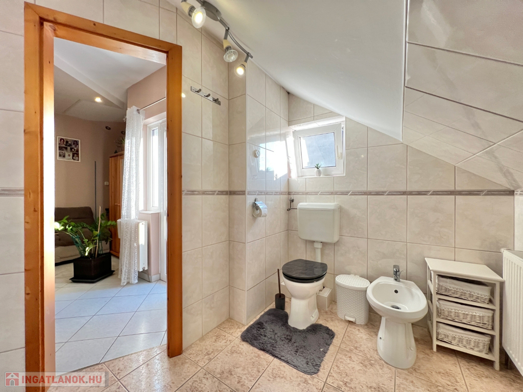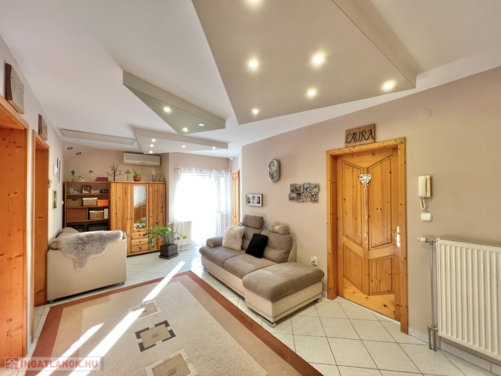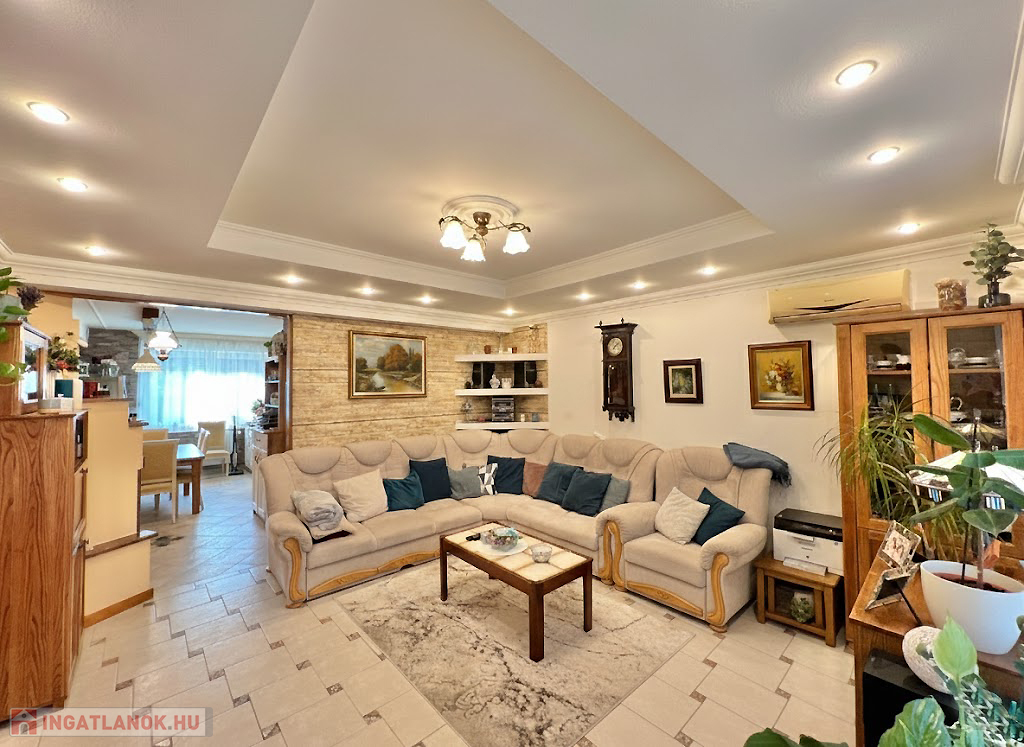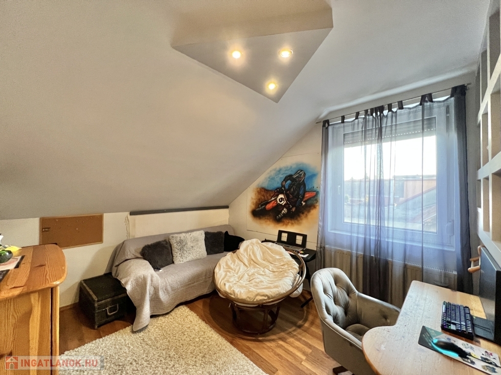 Kaposváron a Donner városrészben - a belváros közelében - 1999-ben két utcára épült, nagyon jó műszaki állapotú és energetikailag korszerűsített családi ház duplagarázzsal, valamint egy különálló lakrésszel együtt eladó. A lakóház alsó szintjén tágas - belső zárt udvar felé néző - nappali, 15 m2-es fedett terasz, 1 szoba, konyha-étkező, közlekedő, fürdőszoba-wc, mosókonyha, illetve 1 db wc helyiségek kerültek kialakításra. A tetőtérben, egy tágas előtér-terasz, 3 szoba, felújított fürdőszoba-wc helyiségek vannak. A fűtése és melegvíz ellátása kombi gázkazánnal és a nappaliban lévő vízteres kandallóval - padlófűtéssel és radiátorokkal megoldott, továbbá a nappaliban és a tetőtérben 1-1 légkondicionáló került felszerelésre. A ház energetikai korszerűsítésen esett át az évek során, a tulajdonos a homlokzatra 5 cm-es hőszigetelést rakatott, valamint új gázkazánt szereltetett fel, 3x20A, riasztó és kamerarendszer kerültek kiépítésre. Az utca felől - további 30 m2-es - jelenleg tárolónak használt - lakóépület van, amelyben 1 szoba, konyha-étkező, kamra, kialakításra váró fürdőszoba-wc helyiségek találhatóak, a fűtése Simat típusú kombi gázkazánnal megoldott. A zárt, hangulatos udvaron - a belváros felé néző - fedett grillterasz lett kialakítva, öntözőrendszer lett kiépítve, továbbá egy 36 m2-es duplagarázs-tároló, illetve az udvarban további 2 személyautónak alkalmas kocsibeálló található. Telek: 294 m2