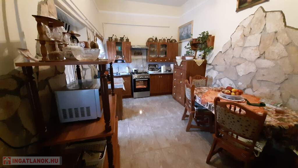 Kaposváron a cseri városrészben, az Akácfa utcában kínáljuk megvételre ezt a szépen felújított, ill. kibővített családi házat. A ház kialakításánál fogva akár két generáció zavartalan együttélését is lehetővé teszi, alapterülete összesen 280 m2. Elöl, az utca felőli részben találunk három szobát, egy nagy, épített zuhanyzós fürdőt, előteret és egy kisebb szobát. A hátsó rész tetőtere beépített, galériás kialakítású. Fent van két háló, lent hatalmas, impozáns nappali tárul elénk, de itt is van egy szoba, valamint egy egészen frissen felújított kádas fürdő. Tágas konyha köti össze a két részt. Fent erkély teszi még változatosabbá a teret. Az egész ház nagyon egyedi, különleges hangulatú. Az udvar térkövezett, és van egy nagy garázs is. A fűtés részben cirkós, részben konvektoros, a nyílászárók hőszigeteltek, redőnnyel felszereltek. Van külön gázóra a két lakrészben. Kiváló lehetőség nagyobb család, vagy több generáció részére. Kétszobás lakást, vagy kisebb családi házat beszámítunk, főleg a cseri városrészben.