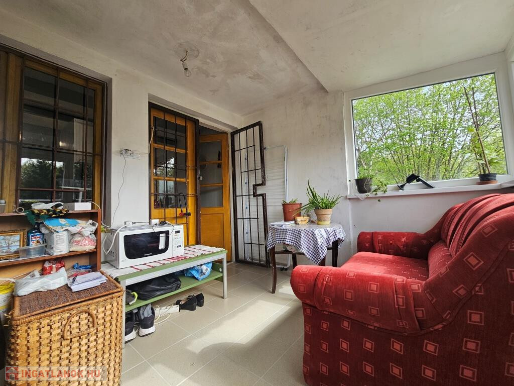 Kaposváron, a Százszorszép utcában kínáljuk megvételre ezt a zártkerti telken épült, állandó lakhatásra is alkalmas, kétszintes plusz pincés hétvégi házat részben felújítva. A felújítás során többek között a földszinten kialakítottak konyharészt új konyhabútorral, valamint leválasztottak egy kis zuhanyzós fürdőt WC-vel, és szigetelték a födémet. Itt, a szoba-konyha-étkező szerepet betöltő tágas helyiségben duruzsol a kályha hideg időben. Innen vezet le a klasszikus, téglázott boltíves pincébe pár lépcső. A korábbi veranda be lett építve műanyag keretes ablakokkal és bejárati ajtóval, ez most az előtér és a nappali, ahonnan szép a kilátás a kertre. Az emeleten két kisebb szoba, illetve tároló kapott helyet, valamint van egy erkély is. A lakótér lent 30, fent 20 m2-es. A házon nagyon sok munkát elvégeztek már, de innentől az új tulajdonos a saját képére formálhatja tovább. A telek 800 m2-es, az utcától lejtős, teraszos kialakítású, csodálatos panorámát nyújt a völgyre. Több új gyümölcsfa és szépen kialakított konyhakert ad friss zöldséget, gyümölcsöt, és természetesen az ezzel járó örömet, valamint kellemes foglalatosságot egyaránt. Az utca murvával szórt, jól járható. Buszmegálló kb. 300 m-re, azaz 4-5 perc sétára van.