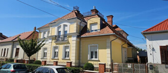Kaposvár egyik legszebb utcájában, a Kassa utcában kínáljuk megvételre ezt az igazán igényesen megtervezett és felújított, kibővített elegáns kétlakásos polgári családiház önálló földszinti lakását a hozzá tartozó teljes telekkel. Az étkező helyezkedik el középen, ide csatlakozik a délnyugati fekvésű, kert felé néző kellemes terasz, illetve innen nyílik minden további helyiség közvetve vagy közvetlenül. Van három tágas, keleti tájolású szoba - a szélső déli ablakkal is ellátva, - fürdő zuhanyzóval és káddal, külön WC, valamint a konyha. Plusz egy háztartási helyiség, ami részben mosókonyha, részben tároló, de itt kapott helyet a kazán és a bojler is. Mindhárom szoba megközelíthető külön is, de az első és a középső át is járható. Az első, délkeleti szobának önálló bejárata nyílik a lépcsőházból is, így akár iroda funkcióra is alkalmas. A nappaliként használt középső szobában van egy üvegfalú kandalló, ami nem csupán szép és jó hangulatú, hanem hasznosan egészíti ki a cirkós fűtést. Minden külső nyílászáró SCHÜCO tip., hőszigetelt üvegezéssel, redőnnyel. A lakás alatt több részből álló pince, hátul dupla garázs és melléképület áll rendelkezésre, ezek összesen 209 m2-et tesznek ki (lakótér: 128,54 m2, terasz: 13,31 m2, pince: 28,14 m2, garázs és tárolók: 39 m2). A telek 630 m2, a garázsokig térkövezve, egyébként gyeppel borított, szépen parkosított. Mind a lakás, mind a kert kiváló állapotban vannak. A 3 fázis vételezése mind az udvaron, mind a garázsban rendelkezésre áll. Elsősorban Pécsen vagy környékén építési telket, családi házat értékegyeztetéssel beszámítunk kizárólag olyan helyen, ahol van vezetékes internet.