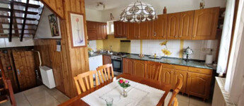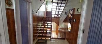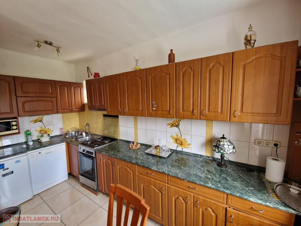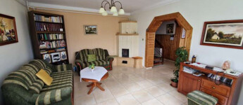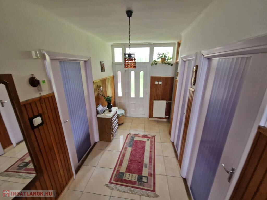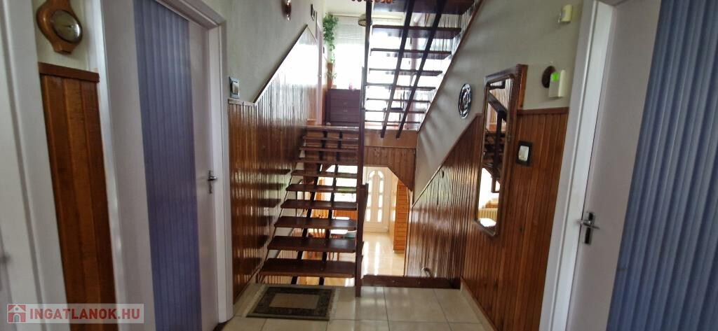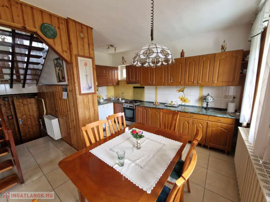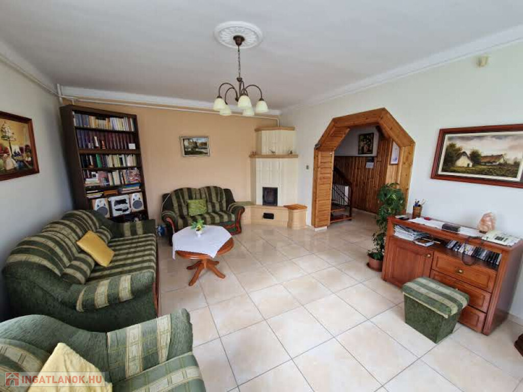 Kaposvár Tüskevári városrészében, a Könyves Kálmán utcában kínáljuk megvételre ezt a szinteltolással épült családi házat. Az utcáról az előtérbe lépünk, amitől jobbra a garázs található, balra egy kis gardrób, aztán a WC, majd a fürdő. Néhány lépcsőn lefelé a nappaliba, illetve az azzal egy légterű étkezős konyhába juthatunk. Innen nyílik egy kellemes és védett terasz hátra a kert felé, valamint a kazánház és a kamra. Ha az előtérből felfelé indulunk, ott két oldalt egy-egy szobát találunk a nappali és a konyha fölött, szemben pedig egy praktikus erkélyt a terasz fölött. Megfordulva és tovább haladva felfelé van még egy szoba és egy fürdő, és végül a legfelső szinten is kialakítottak plusz egy szobát. Így a tágas nappalin kívül van egy nagyobb szoba, valamint három hálószoba. A teljes lakóterület 130 m2. A ház kiváló állapotú, külső nyílászárói hőszigeteltek, műanyag keretesek. Fűtése gázkazánnal megy, és a nappali sarkában van egy cserépkályha is. A telek 789 m2-es, enyhén lejt, igazán szépen gondozott, parkosított, karbantartott, madárbarát. Mind a kert, mind a ház jó hangulatú, barátságos.