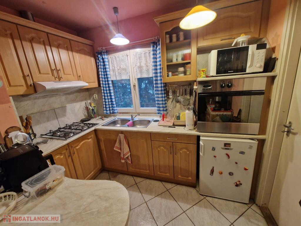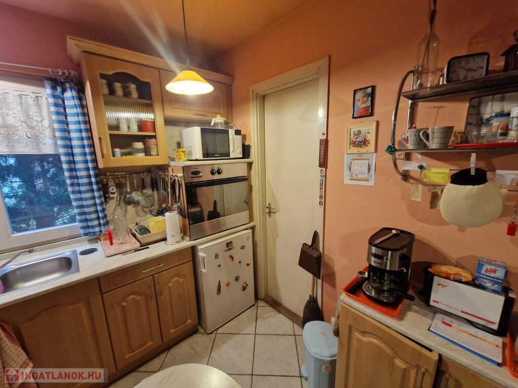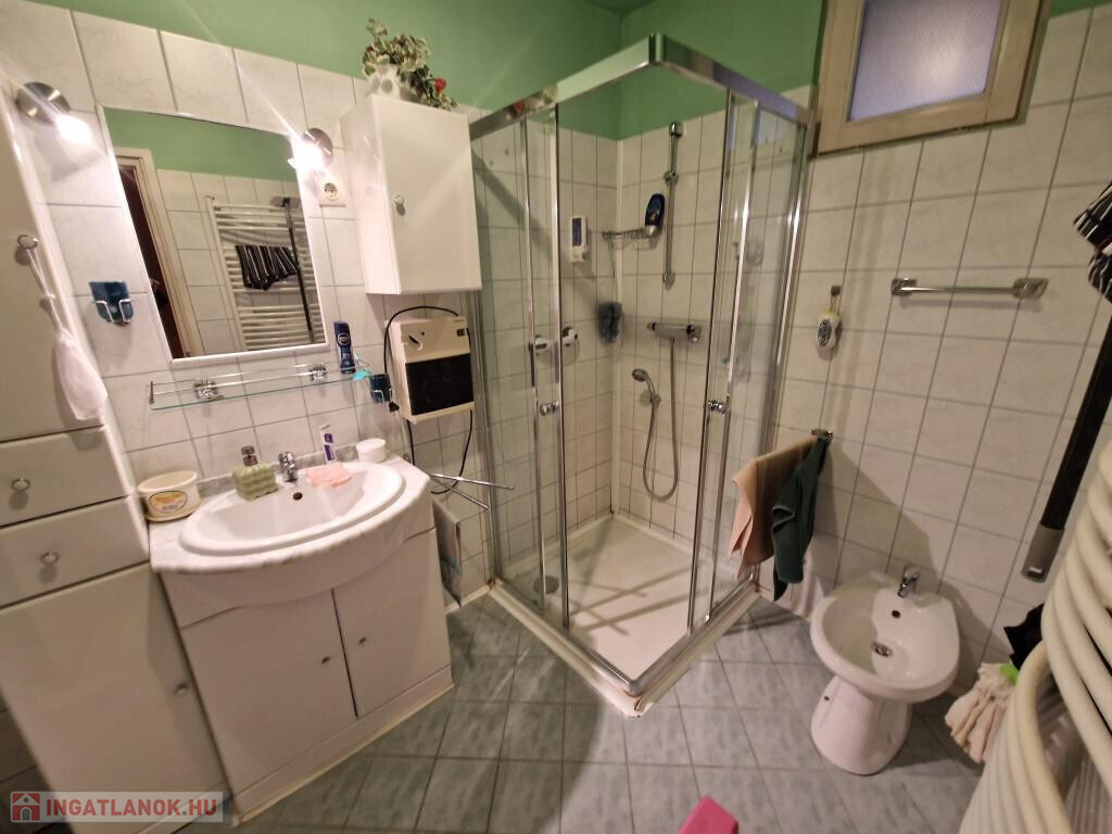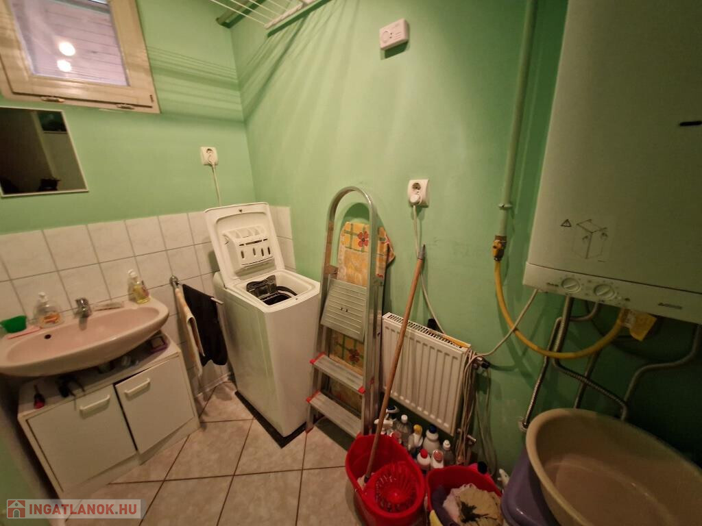 Kaposváron, a Patak soron kínáljuk megvételre ezt a 2000-ben épült családi házat. Lakóterülete 68 m2, amit kiegészít a 16 m2-es garázs, és hátul a fedett terasz. Bejárata a teraszon és a szélfogón át vezet a tágas étkezős nappaliba, ami egylégterű a konyhával. Ez a közös élettér, az otthon szíve. Innen nyílik két hálószoba, a fürdő zuhanyzóval, káddal, bidével, a külön kialakított WC, valamint egy háztartási helyiség, ahol jól elfér a kazán, a mosógép, és még sok egyéb holmi. A ház praktikus elrendezésű, könnyűszerkezetes, kívülről szigetelt, külső nyílászárói szintén hőszigetelt üvegezéssel készültek, fűtése cirkós. A gázkazán újnak tekinthető, 2022-ben cserélték. A garázs elöl, az utcáról könnyen megközelíthető, a terasz hátul déli, délnyugati tájolású, intim elhelyezkedésű, kellemes ott tartózkodást tesz lehetővé. A telek 736 m2-es, sík, szépen parkosított, karbantartott. Környezete nyugodt, csendes. Kisebb család számára kiváló lehetőség!