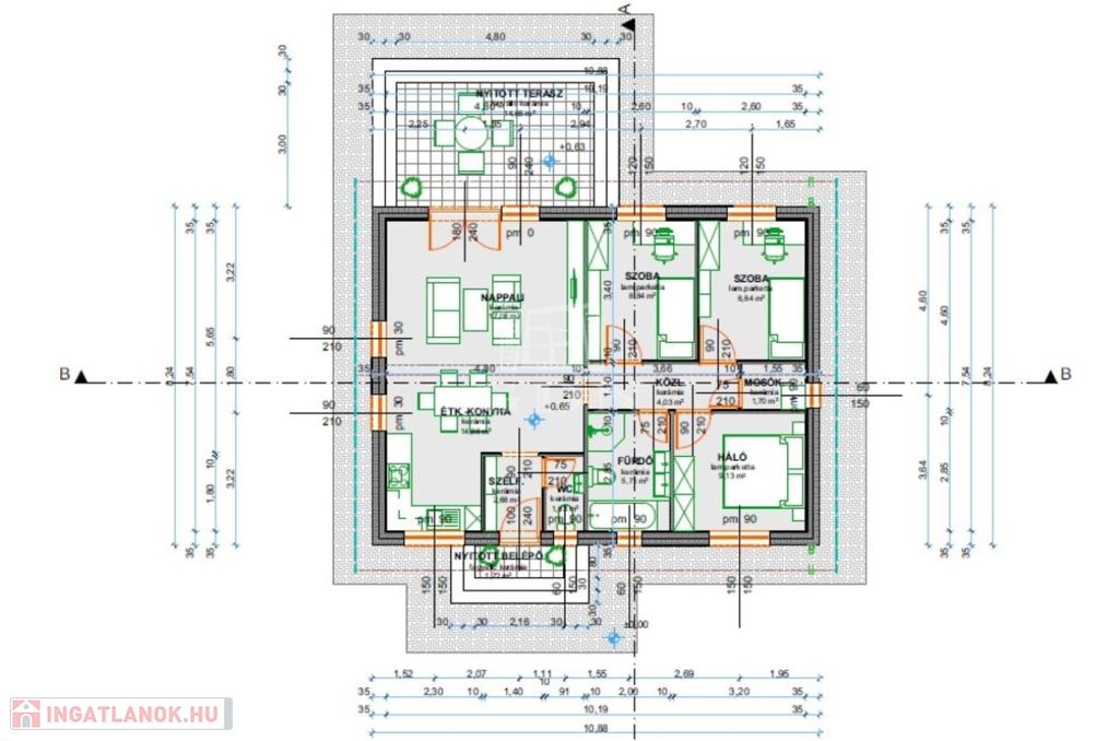 Még elérhető 6500 nm telekkel 77,4 nm családi ház is ami 74,5 MFt.