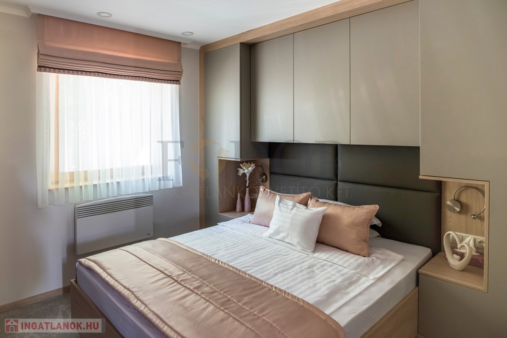 - Luxus gépesített konyha, kör alakú nappali, gardróbos hálószoba, wellness részleg