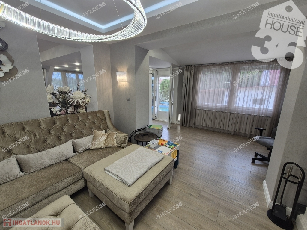 Eladóvá vált egy 2020 -ban gyönyörűen nívós luxus kivitelben felújított 2000-es építésű 153 nm -es nappali + 3 szobás családi ház medencével.