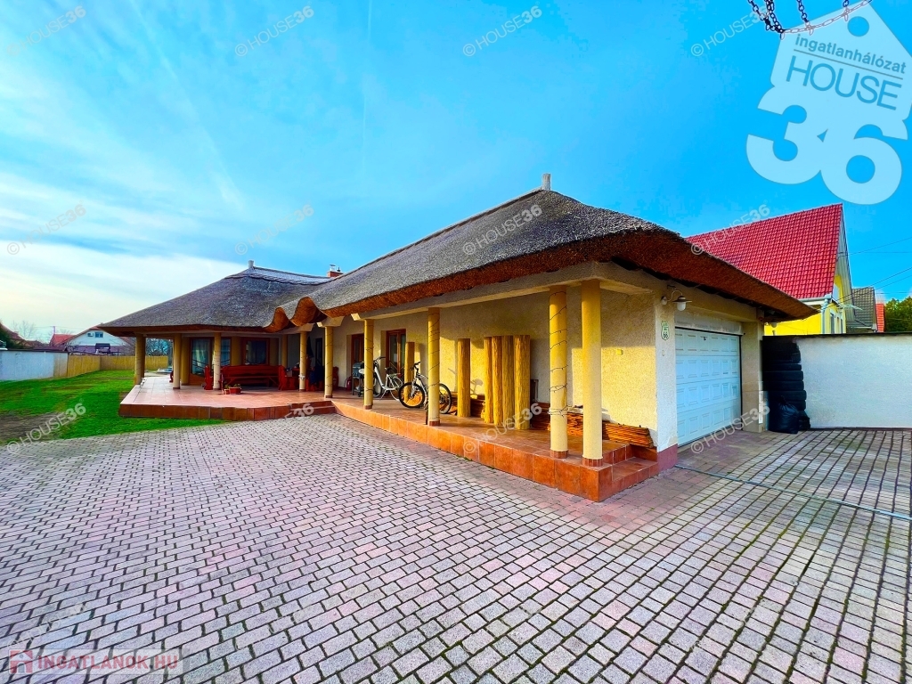Eladó Kecskemét-Hetényegyháza kedvelt családi övezetében, Kecskeméthez közel eső részen egy 1993 szeptemberében átadott, PRÉMIUM minőségű hagyományos anyagokból igényesen megépített nádtetős villa.
